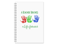 Se hai voglia di donare qualcosa di unico e che al tempo stesso sia funzionale, ti indichiamo questa agenda personalizzata; proposta nella grande dimensione, potrà essere abbellita in copertina, con il motivo grafico con impronte colorate e la scritta in verde.