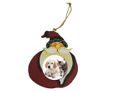 Gli addobbi a forma di Babbo Natale, nella versione con foto tonda, sono realizzate in legno dal colore rosso e sono disponibili in due modelli, che si differenziano per l’orientamento del cappellino.
