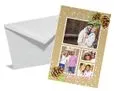 Acquista sul nostro sito questo fantastico biglietto auguri natalizio e decoralo riportando in copertina, la stampa delle tue immagini, foto o sfondi da abbinare a questa grafica in struttura collage con pigne, riquadri e palline di neve.