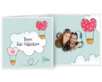 Biglietto a 3 ante quadrato nuvole e cuori con foto innamorati