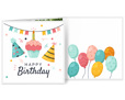 Biglietto a 3 ante quadrato con grafica palloncini compleanno