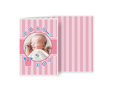 Biglietto a 3 ante verticale per bambini con strisce rosa