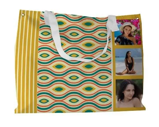 Per andare in spiaggia o per recarti in piscina, non può mancare tra i tuoi accessori la borsa personalizzata; proposta in tessuto acetato verrà decorata dalla stampa di questa grafica nel colore giallo con sfumature gialle.