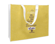 Ti consigliamo l’acquisto di questa borsa spesa in tnt, personalizzata con sfondo giallo e una scritta dedicata a chi vuoi bene.