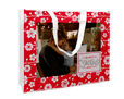Scegli di poter decorare lo stile della tua borsa della spesa in tnt, con la stampa della tua foto, immagine o sfondo da abbinare a questo motivo grafico con sfondo rosso e fiori bianchi.