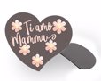 Scegli di personalizzare lo stile della tua calamita a forma di cuore, con la stampa della tua foto, immagine o sfondo; rendila originale come più ti piace, impreziosendola con una grafica con fiori rosa, disegnati su sfondo marrone con la scritta, posta al centro.
