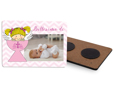 La grafica a tema ti aiuterà a personalizzare la calamita in legno con estrema facilità. Ti basterà inserire la foto che preferisci e se vorrai, potrai aggiungere del testo come il nome della bimba o la data del battesimo.
