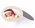 Per festeggiare il Natale in maniera del tutto originale, ti consigliamo l'acquisto di questa magnifica calamita personalizzata; proposta nella forma ovale e dalla caratteristica flessibile, verrà decorata su tutta la superficie dal motivo grafico natalizio e la stampa della tua foto.