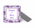 Realizza online il gadget del tuo matrimonio; acquista la tua calamita personalizzata e rendila unica, decorando la superficie, con la stampa grafica con fiori viola.