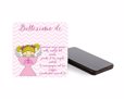 Festeggia il battesimo della tua piccola bimba con questo meraviglioso magnete; nella forma quadrata e da attaccare su qualsiasi ripiano sarà capace di sorprendere chiunque.