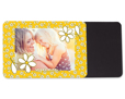 La tua magnifica calamita dalla forma rettangolare, sarà subito pronta per accogliere la stampa della tua foto, immagine o sfondo, da abbinare al motivo grafico con piccolo margherite, disegnate su sfondo giallo.