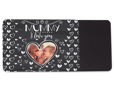 Personalizza lo stile della tua calamita dalla forma rettangolare e rendila unica, con la stampa della tua foto, immagine o sfondo da abbinare al motivo grafico dallo sfondo grigio, con il tuo posto al centro nel colore bianco, con piccoli cuoricini e la scritta.