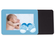 Personalizza la tua foto calamita dalla forma rettangolare e rendila preziosa, con la stampa della tua immagine, foto o sfondo, da abbinare al motivo grafico con cornice nel colore blu e scarpette abbinate.