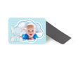 Originale pensiero da rilasciare per la ricorrenza del tuo piccolo bimbo, è questo magnifico magnete dalla forma rettangolare; personalizzalo con la stampa della tua foto, immagine o sfondo al motivo grafico con il piccolo elefantino, con sfondo a pois con la nuvola stilizzata.
