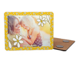 Personalizza lo stile della tua calamita preziosa e decorala con la stampa della tua immagine, foto o sfondo da abbinare al motivo grafico con margherite nel colore bianco, disegnate su sfondo giallo e abbinate alla scritta.