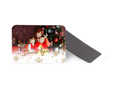 La tua calamita con foto verrà decorata dal motivo grafico dallo sfondo bianco con scritta oro, stelle di neve e palline abbinate; il tutto farà da sfondo alla stampa della tua immagine, foto ricordo o logo che abbinerai, ottenendo questo effetto sfumato.