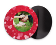Decora l’aspetto della tua calamita personalizzata, con la stampa della tua foto, immagine o sfondo da abbinare al motivo grafico nel colore rosso, con cuori in trasparenza stilizzati.