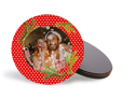 La tua foto calamita viene realizzata nella forma rotonda e in masonite; lucida e splendente con il motivo grafico stilizzato, riuscirà a conquistare grandi e piccini con il suo carattere magnetico.