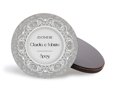 Prendi in considerazione la bellezza di questa calamita in masonite rotonda per trasformarla in un perfetto dono da regalare in vista del tuo evento nuziale; da abbinare alle tue bomboniere o agli inviti, sarà un modo originale per ricordare il tuo grande giorno.