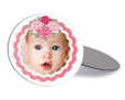 Scegli il nostro sito di e-commerce per realizzare la tua favolosa calamita tonda: la tua foto o la tua immagine, verrà decorata da questa grafica con i merletti rosa e bianchi e le quattro rose posizionate, sulla parte superiore.