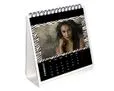 Crea il tuo favoloso calendario da tavolo e affidati a questa grafica dallo sfondo effetto zebrato nel bianco e nero con le due fasce poste in abbinamento; questo tema verrà riprodotto sulla copertina e sulle pagine dei mesi, al quale assocerai la stampa delle tue immagini o delle tue foto.