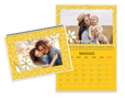 Stupisci la tua mamma con un’idea regalo realizzata appositamente per lei, crea un calendario da parete in formato doppio stampato con fotografie e grafica a tema festa della mamma con sfondo giallo e margherite bianche.