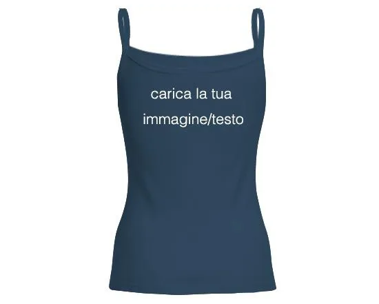 Abbiamo pensato di proporti questa canotta blu da personalizzare, per darti la possibilità di indossarla con pantaloni, gonne e short; proposta in cotone e con le sue bretelle potrai personalizzarla con la stampa di un’immagine o uno sfondo che ti rappresenta.