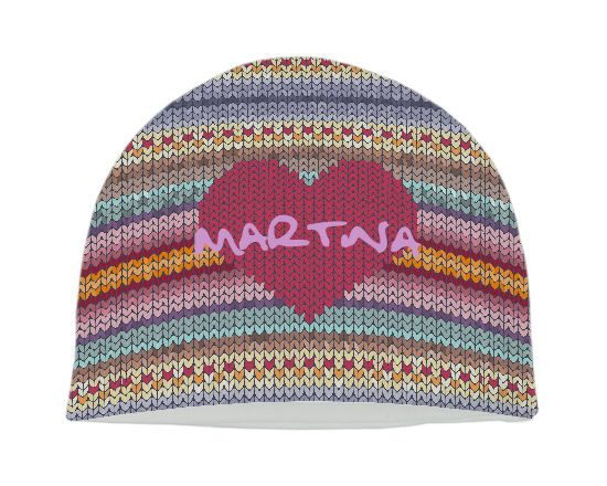 Copriti durante l’inverno e prenditi cura della tua salute, realizzando questo magnifico cappello in pile: nella forma piccola potrà accogliere la stampa di questa grafica colorata con il cuore posto al centro.