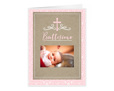 Scegli la possibilità di donare per una ricorrenza importante come il Battesimo questa magnifica card; personalizzala con la stampa della tua foto e fatti conquistare dal motivo grafico dallo sfondo rosa.