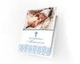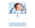 Crea con pochi click lo stile della tua magnifica card in cartoncino e rendila particolare con la stampa della tua foto, immagine o sfondo, da abbinare al motivo grafico nel colore blu, con decorazioni stilizzate, fascia e croce.