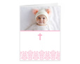 Scrivi i tuoi auguri o il tuo pensiero straordinario, all’interno di questa card pensato per festeggiare la ricorrenza di una bimba speciale; fatti conquistare dal motivo grafico nel colore rosa, con decorazioni stilizzate e simbolo religioso, per essere compatibile con la tua occasione.