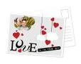Personalizza l’aspetto della tua romantica cartolina online con la stampa della tua foto, immagine o sfondo, da abbinare a questo motivo grafico, con dolci nuvole e cuori; proposta in cartoncino lucido, sul retro verrà personalizzata con le tue parole, frasi o messaggio speciale.