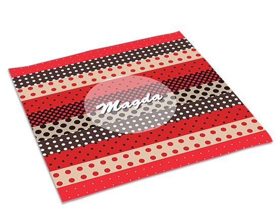 Per dare vita al tuo accessorio personalizzato abbiamo pensato a questa grafica tempestata di pois; sul tessuto, accoglierà la stampa della tua immagine o la tua foto.