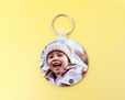 Portachiavi in Legno Tondo con foto e grafica Happy Birthday