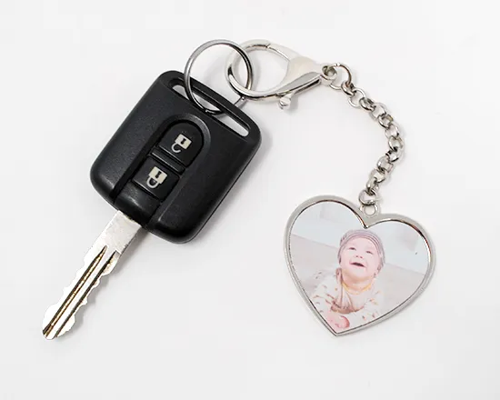 Realizzato a forma di cuore, questo charme in metallo può essere stampato sull’intera superficie con le tue fotografie ed immagini preferite e potrà essere applicato facilmente alla zip o al manico della tua borsa grazie al pratico moschettone posto all’estremità della catenella in metallo.