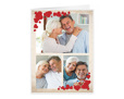 Questa grafica rossa a tre riquadri, ti darà l’opportunità di stampare tre foto a cui sei legato; potrai completarla con delle clip art o un testo, componendo un messaggio personale.