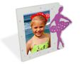 Un regalo speciale per la tua piccola bambina: stampa la sua foto più bella in una cornice bianca con stelline viola arricchita dalla sagoma di una ballerina di danza classica.