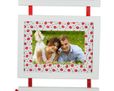 La prima cornice è arricchita da un cuore con motivo floreale, stesso motivo stampato sulla seconda cornice; la terza ha sul lato un cuore con stampa a pois. Il colore predominante per le decorazioni è naturalmente il più romantico, il rosso.