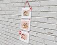 Le tre cornici saranno tenute insieme da un elegante nastrino rosso, donando un effetto speciale alla composizione.