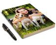 Acquista online il tuo diario dell’amico a quattro zampe e personalizza la copertina rigida rivestita in tessuto acetato con lo scatto più buffo dei tuoi cuccioli.