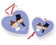 Se hai da convogliare a nozze e magari farai il passo sotto Natale, ti consigliamo l’acquisto di questi meravigliosi cuori; addobbi natalizi per eccellenza, accoglieranno al loro interno la stampa della tua immagine o della tua foto, da abbinare a questa grafica con i teneri sposini.