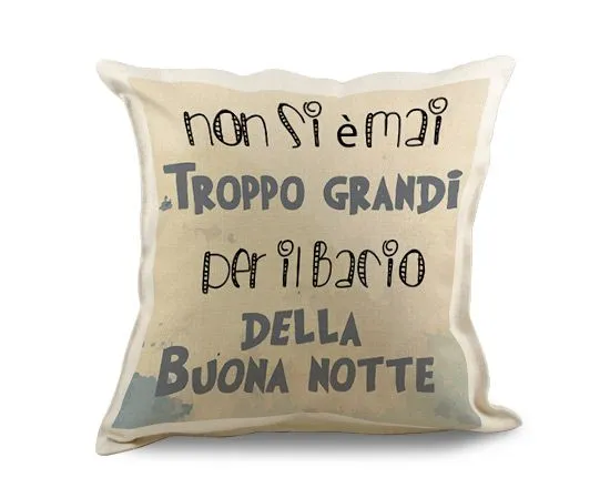 Personalizza il tuo foto cuscino dalla forma quadrata e dalla federa in juta; originale per il suo motivo grafico con scritte e dal valore dolcissimo, è un grado di stupire chiunque.