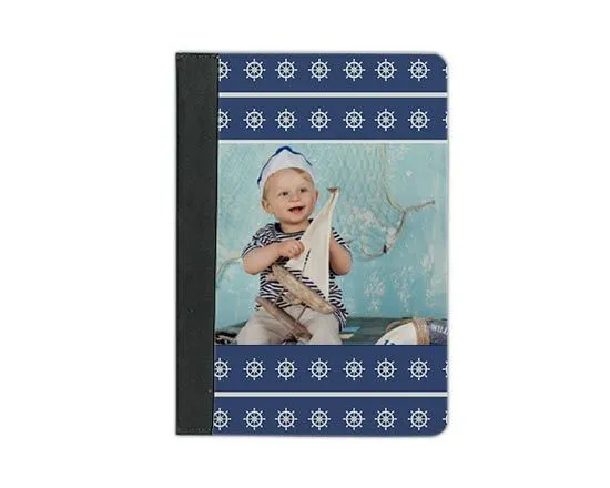 Se hai intenzione di proteggere il tuo ipad Mini 4 non puoi fare a meno di questa cover personalizzata; proposta nella forma di un libro potrai personalizzarla sulla copertina con la stampa della tua immagine abbinata a questa grafica con ancore.