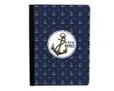 Se hai voglia di decorare la tua custodia per iPad con qualcosa di originale, puoi affidarti all’eleganza e alla raffinatezza di questa grafica con ancore bianche disegnate su sfondo blu scuro.