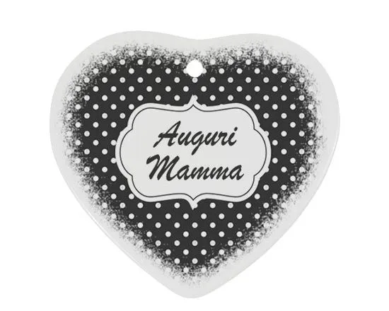Per una donna amante del buon gusto, consigliamo l’acquisto di questo strepitoso cuore in ceramica da personalizzare con una scritta o un pensiero o con i tuoi auguri; proposto con la grafica piena di pois bianchi, riprodotti su sfondo nero e la magica finestra stilizzata, sarà in grado di stupire per il suo aspetto caratteristico.