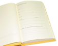 Il diario presenta un datario perpetuo da 11 mesi, da Settembre a Luglio e ha all’interno fogli bianchi a righe, ciascuno datato.
