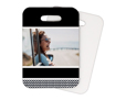 Se hai da festeggiare un data o se per caso sei alla ricerca di una targhetta per la tua valigia, puoi confidare in questa; proposta nel materiale resistente, accoglierà la stampa della tua foto abbinata a questa grafica nel colore nero con bordi bianchi e trama zig zag posta sotto.