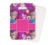Se hai voglia di personalizzare le tue borse o i tuoi borsoni con qualcosa di ben visibile e che ti possa identificare, puoi scegliere questa etichetta da valigia; sulla sua superficie in legno accoglierà la stampa della tua immagine abbinata a questa grafica fucsia e fiori.