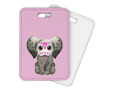 Personalizza la superficie di questa etichetta bagaglio in ecopelle e rendila particolare con la grafica dallo sfondo rosa, con il magnifico elefantino stilizzato, con piccole decorazioni.