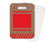 Abbiamo pensato a questa grafica, con bande rosse e riquadro centrale, per andare a decorare la tua meravigliosa targhetta.